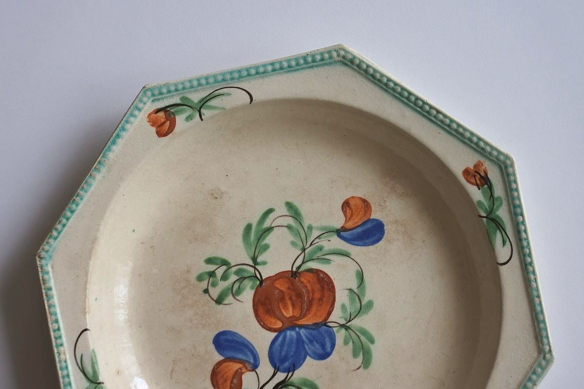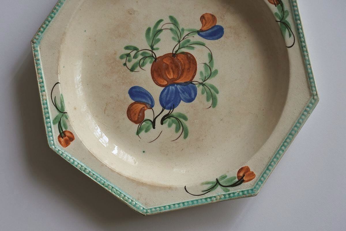 オクトゴナル手描き花絵皿A フランス19世紀(C.1814-1840)