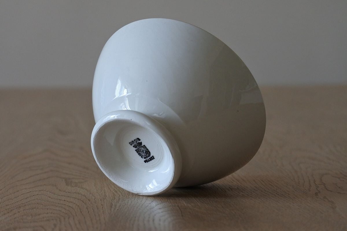Digoin & Sarreguemines(ディゴワン&サルグミンヌ)の窯印があるシンプルなカフェオレボウル。無傷ではありませんが、ほとんど使用感のないきれいな品です。ボウルAよりやや小さめで一般的なサイズ。実用品として十分楽しめそうです。フランス東部ブルゴーニュ地方にあったDigoin 窯と、ドイツとの国境近くにあったSarreguemines 窯が一緒になり生まれたDigoin & Sarreguemines 窯は、アンティークやヴィンテージのカフェオレボウルファンが多い窯のひとつ。ご紹介しているボウルの印は1920~1950年頃に使用されていたとされるタイプのものです。
