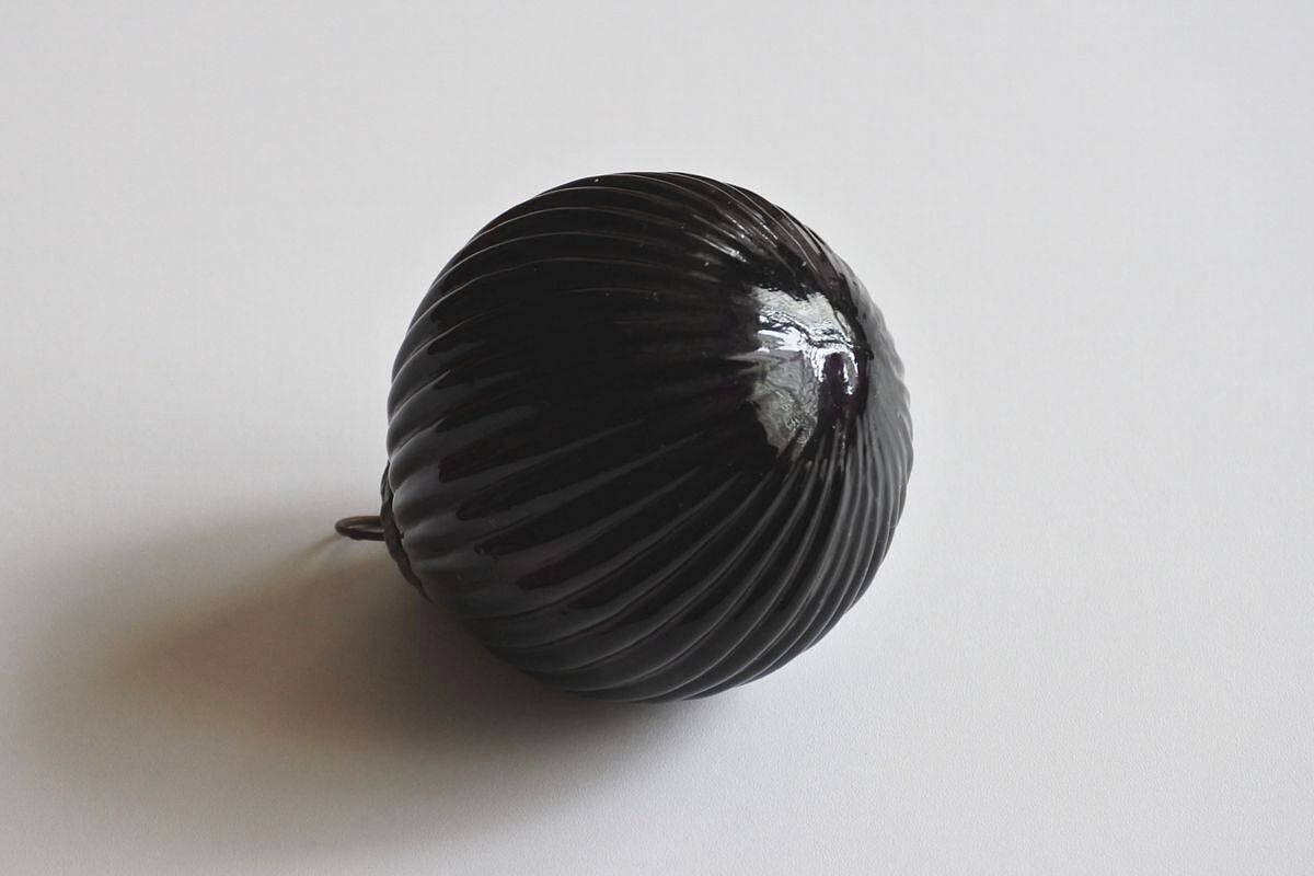 深い紫色の大きなガラスボール。厚みがあり陶器のような質感です。ロンドンの老舗の画材屋さんにディスプレイしてあるのを見て素敵だなと思い探し始めましたが、新しい時代の複製品が多く(それはそれでいいです)、なかなか古いものには出会えず。イギリスの海辺の小さな街のアンティーク店で、思いがけず見つけることができました。クリスマスのオーナメントとしてつくられたものですが、夏の庭や室内のグリーンとの相性も良さそうです。窓際などにオブジェとして置いておくだけでも、雰囲気があって楽しめます。
