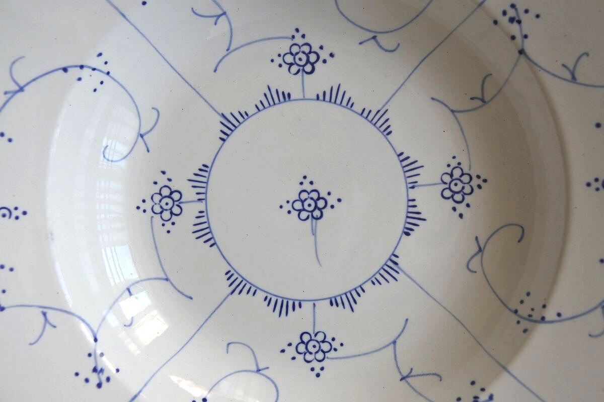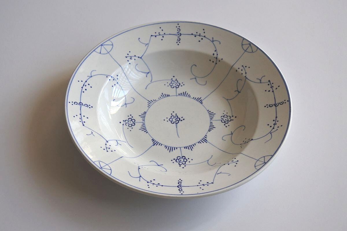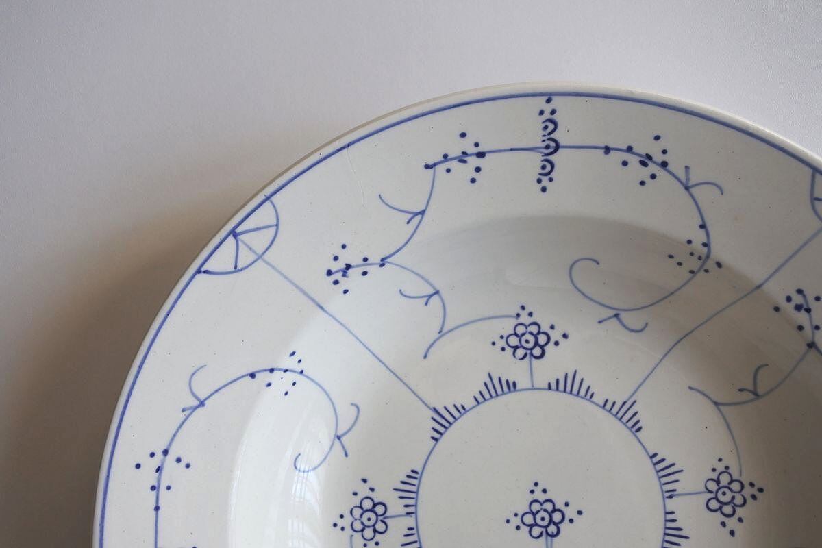 ブルーの花麦わら柄。古い時代からヨーロッパで好まれ、長く使用されてきたパターンのひとつです。Villeroy & Boch(ビレロイ&ボッホ)の19世紀終わり頃に使用されていた窯印があります。花麦わら柄は窯や時代ごとにニュアンスが異なりますが、ご紹介しているお皿はひとつひとつ手描きの線が軽やか。白釉のマットでやわらかな質感にやさしく映えています。ビレロイ&ボッホの創業は18世紀。さまざまな変遷を辿りながらも現在まで続く老舗です。