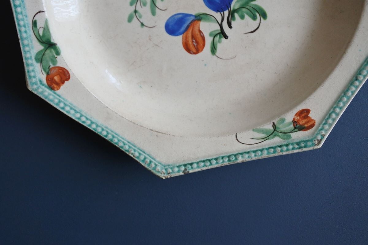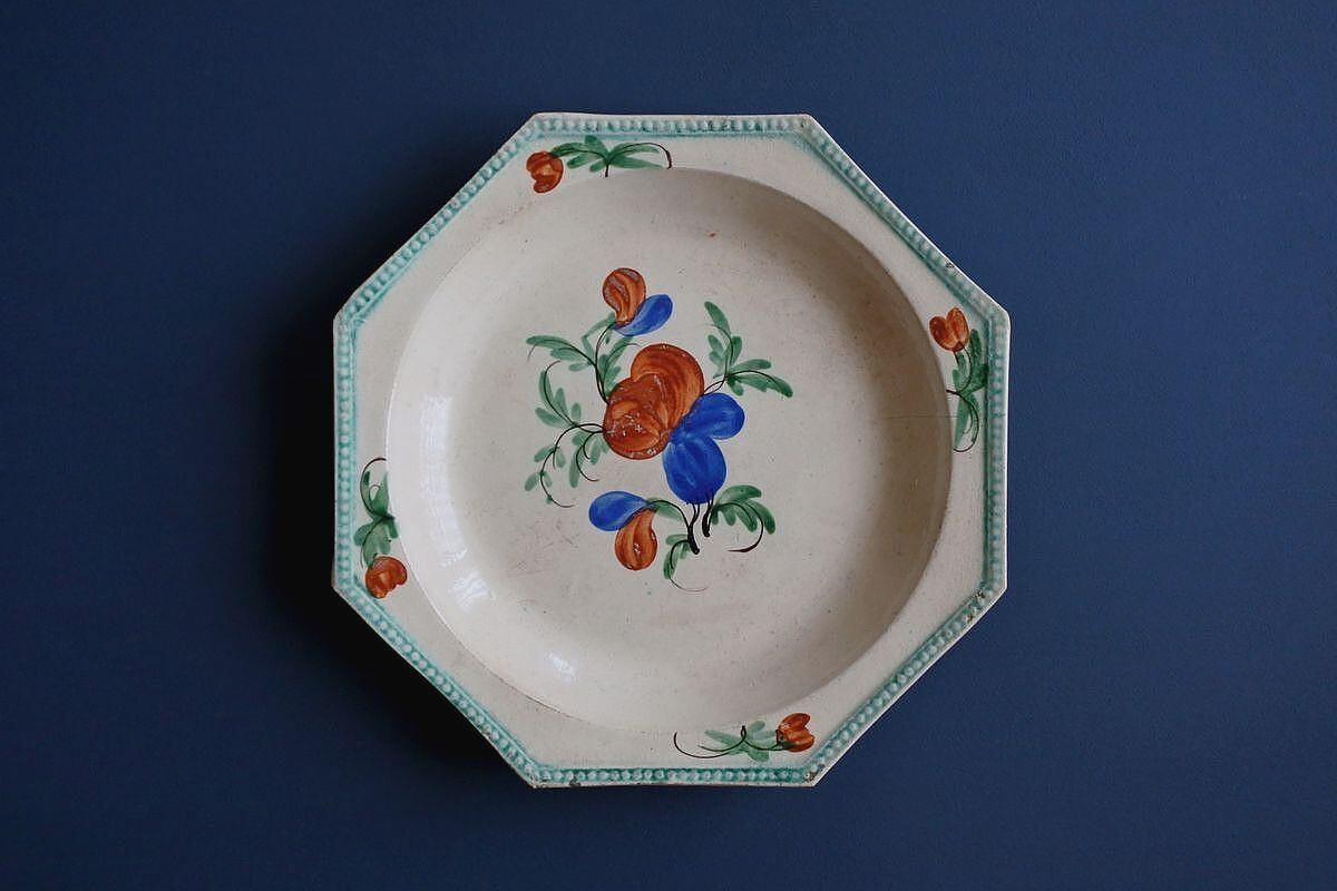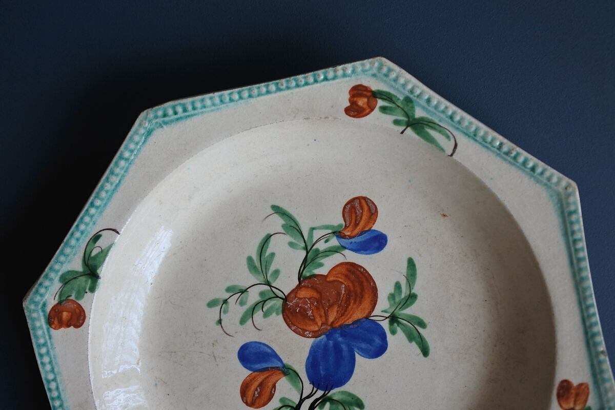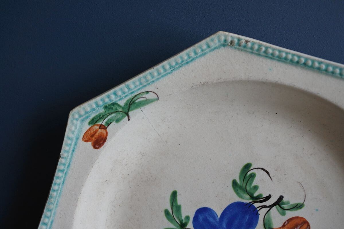 オクトゴナル手描き花絵皿D フランス19世紀(C.1814-1840)