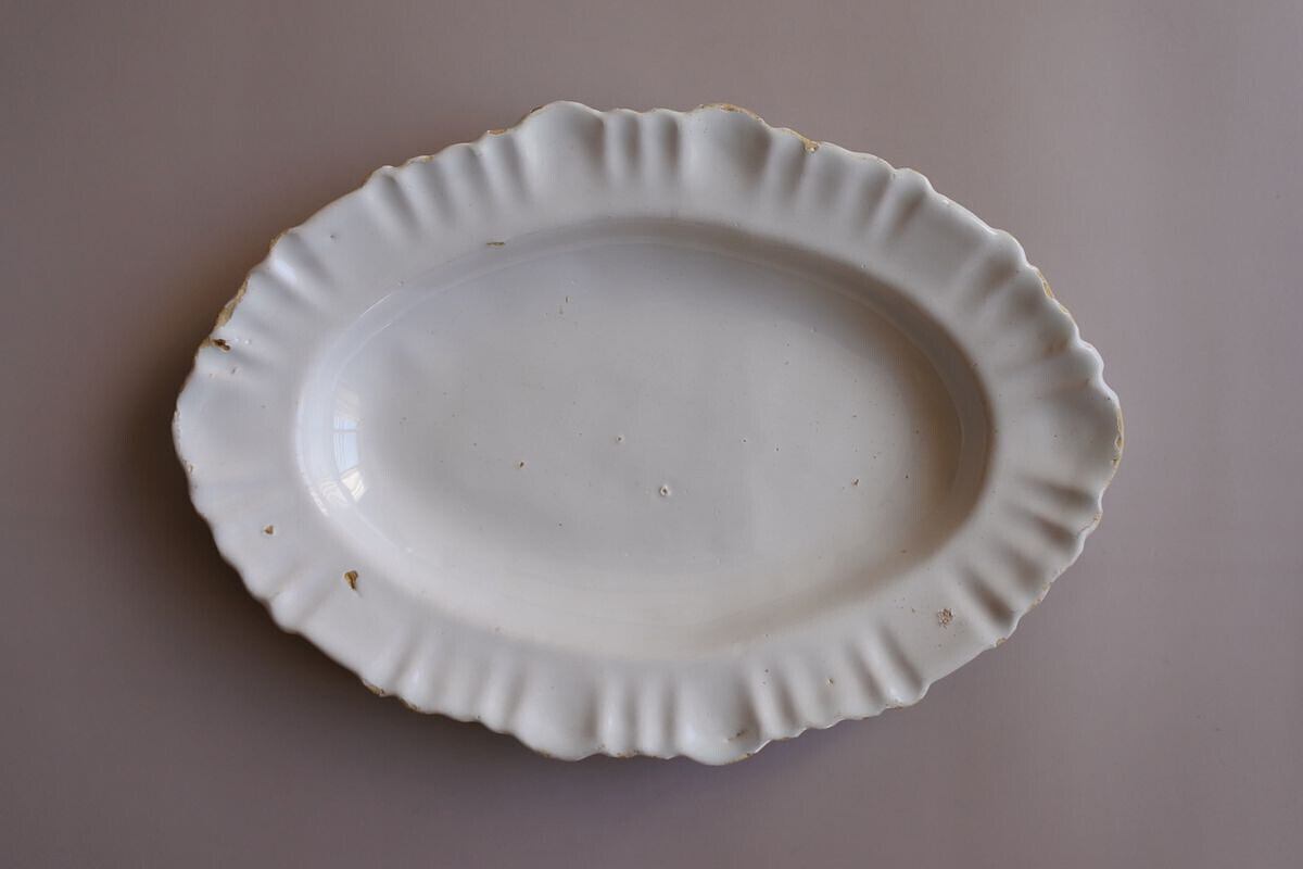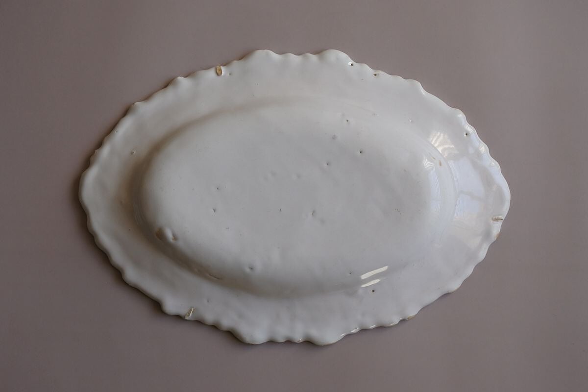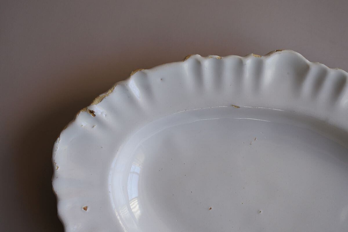 白釉フリルリムオーバル皿 フランス18~19世紀