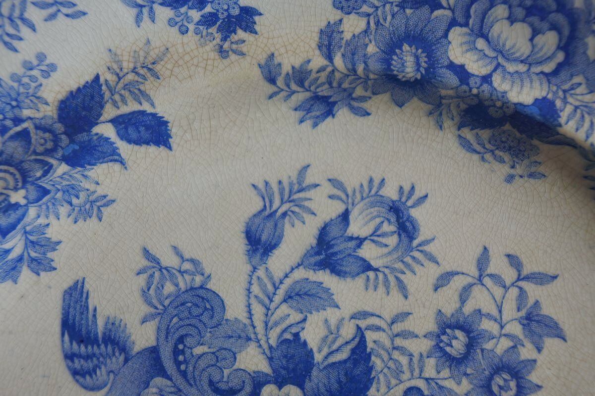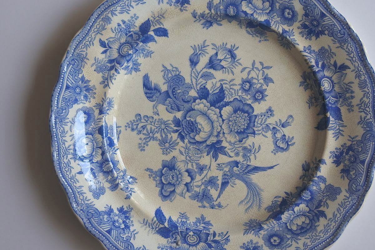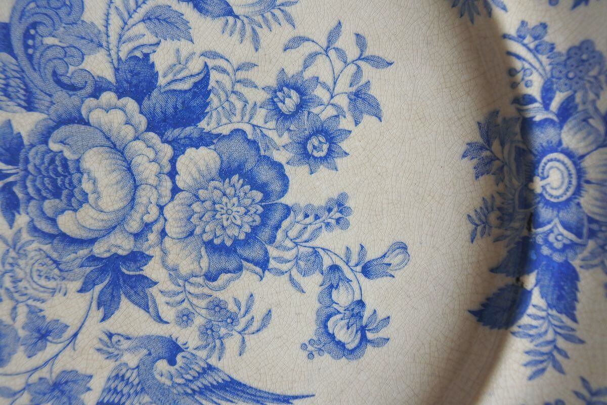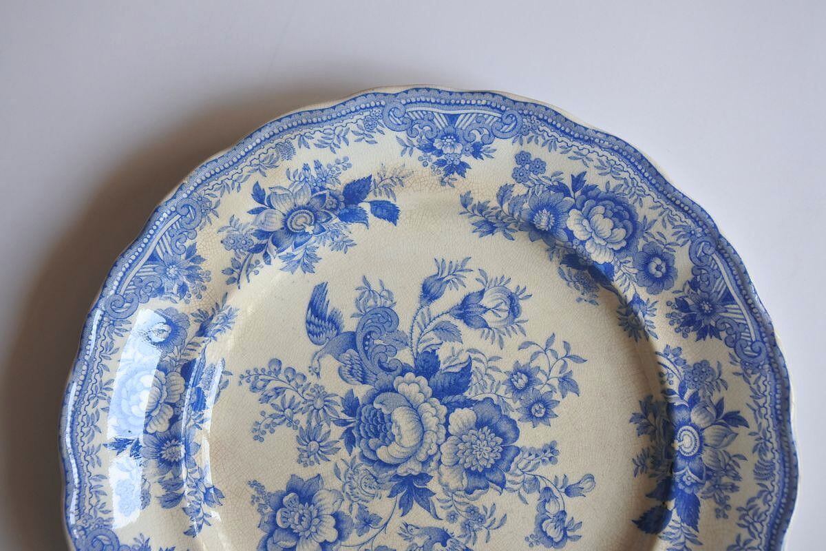 ブルーの花鳥絵柄皿A イギリス19世紀(1862~1904年頃)